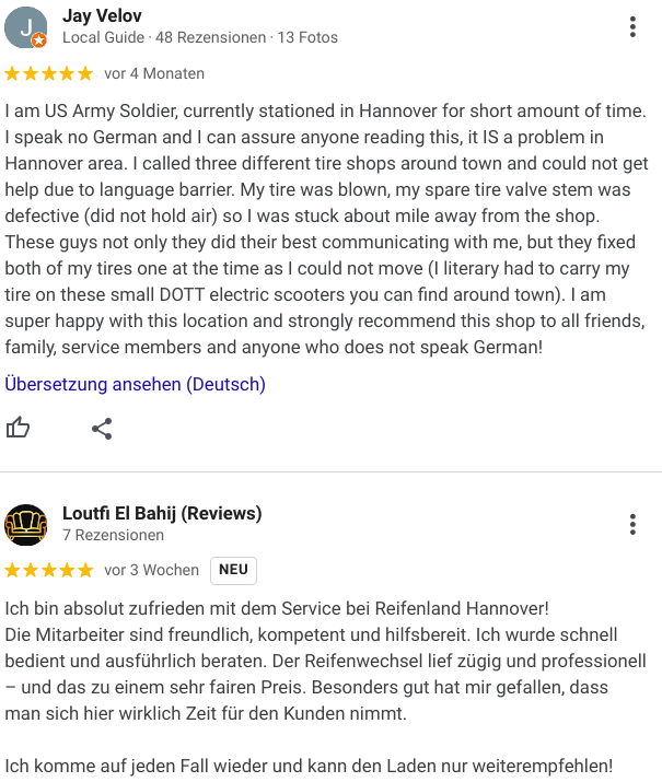 Reifenhandel - sorgfälltig geprüft & sortiert